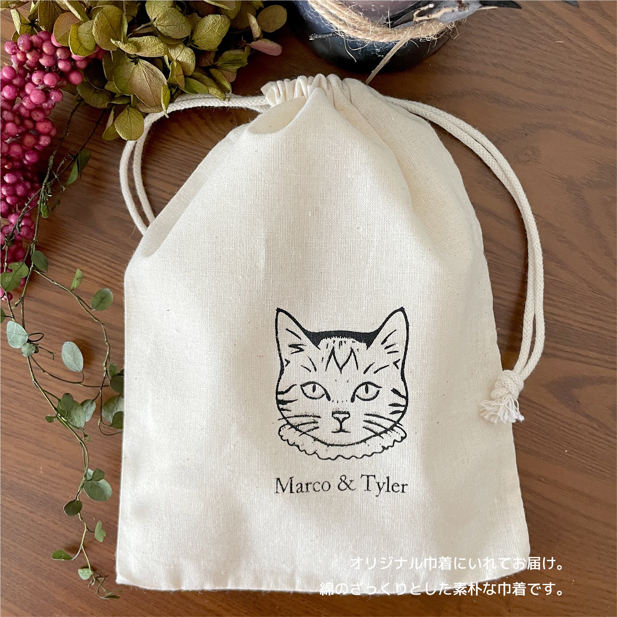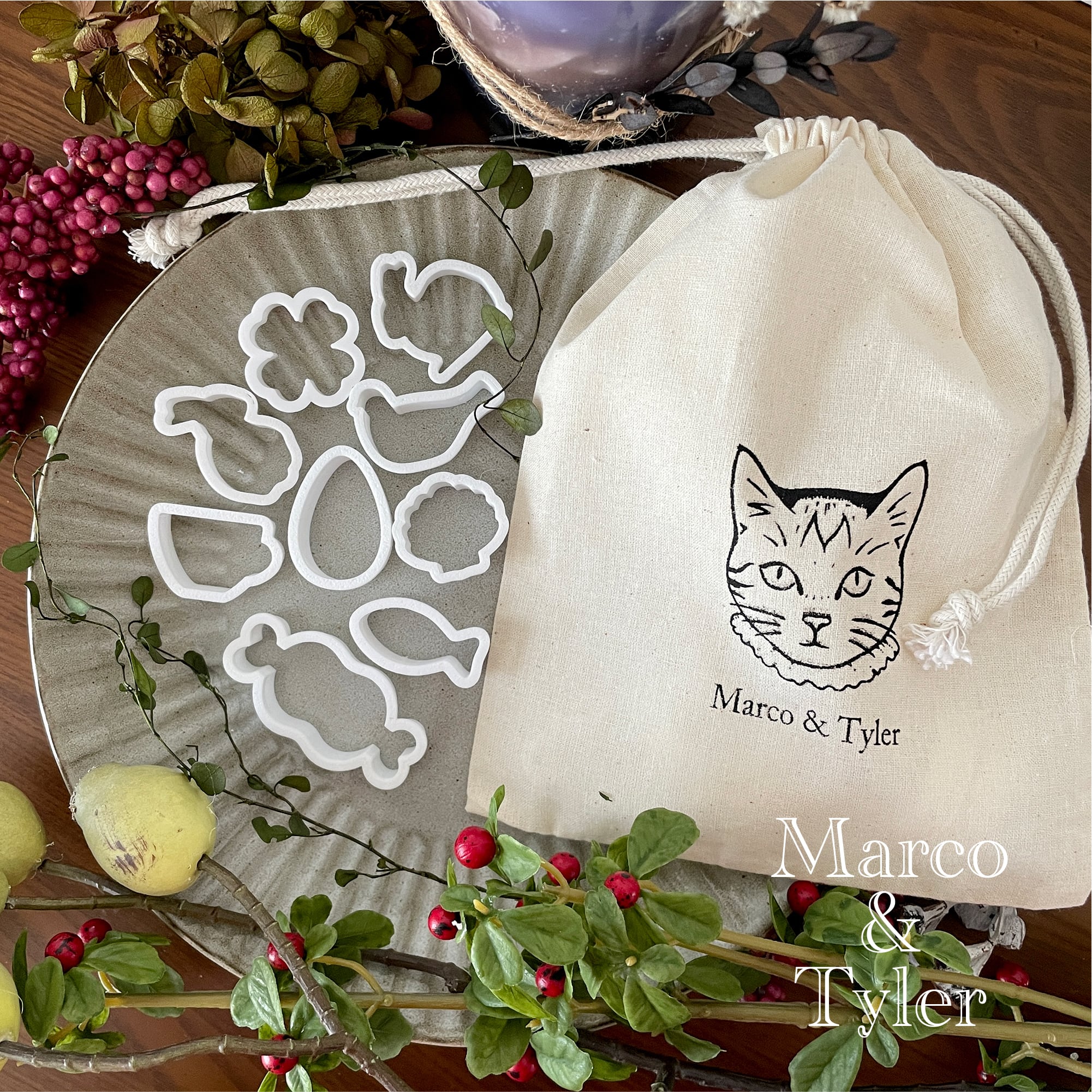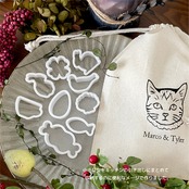 3cmくらいの小さな型10個をマルコタイラーオリジナルの巾着にいれました